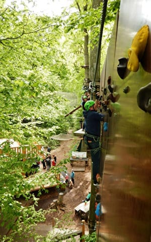 Besucher im Kletterwald Taunus. Im Taunus gibt an verschiedenen Orten attraktive Möglichkeiten zum Klettern. Der Klettergarten in Friedrichsdorf ist ein Waldseilpark der Superlative. Dort wartet nicht nur der höchste Parcours Deutschlands auf Bezwinger, sondern auch die zwei längsten Seilrutschen Hessens. Spaß, Nervenkitzel und ein außergewöhnliches Naturerlebnis sind garantiert.