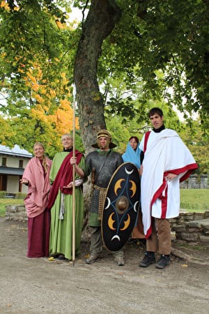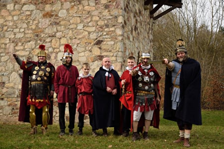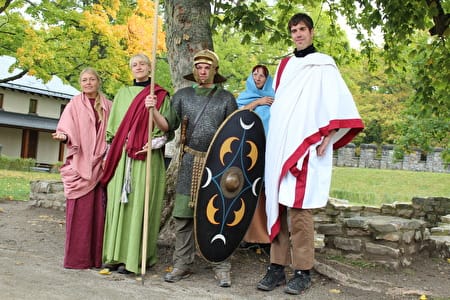 Sich einmal wie ein Römer fühlen: Besucher verkleidet als Römer. Die Saalburg, zur Römerzeit ein Kastell mit Lagerdorf an der Grenze des Römischen Reiches zu den germanischen Stammesgebieten, wurde auf Initiative Kaiser Wilhelm II. um 1900 wieder aufgebaut. Die in der Welt einmalige Anlage gehört zum UNESCO-Welterbe Limes.