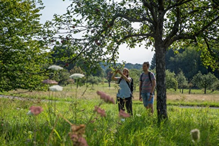 Wanderer Im Kirdorfer Feld. Im rund 160 Hektar großen Kirdorfer Feld wechseln sich artenreiche Streuobstwiesen, extensiv genutze Feucht- und Trockenwiesen sowie kleinere noch landwirtschaftlich genutzte Flächen ab. Das Kirdorfer Feld ist heute FFH-Gebiet sowie in Teilen Naturschutz- bzw. Landschaftsschutzgebiet.