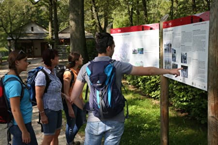 Wanderer bei einer Schauvorführung im Freilichtmuseum Hessenpark. Abseits des Taunus-Hauptkammes führen zahlreiche Wanderwege durch das sanft hügelige Terrain des Usinger Landes. Im Freilichtmuseum Hessenpark gewinnen Wanderer durch rund 100 Originalbauten auf einer Fläche von 60 Hektar einen spannender Rund-um-Blick über 400 Jahre ländliches Leben in Hessen.