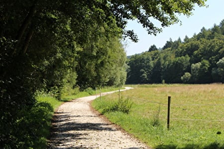 Abschnitt des Weiltalweges bei Weilrod. Mit einer Gesamtlänge von 47,5 km erstreckt sich der Weiltalweg vom Hochtaunus bis zur Residenzstadt Weilburg. Auf dem Weg in Richtung Norden geht es entlang der romantischen Weil meist sanft bergab. Für Wanderer und Radfahrer ist der Weiltalweg gleichermaßen geeignet. Gut ausgebaut und mit vielen Rastmöglichkeiten versehen, führt der Weg vorbei an Naturdenkmälern und Sehenswürdigkeiten aller Art. Hinzu kommen tolle Ausblicke und gemütliche Einkehrmöglichkeiten.