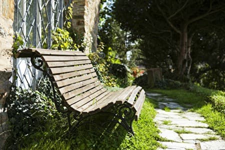 Rastplatz in der Nähe von Burg Kronberg. Kronberg hat sich über die Jahrhunderte hinweg an vielen Stellen seinen historisch gewachsenen Charakter bewahrt. Burg Kronberg als Kern der Siedlung sowie die malerischen Altstadtgassen mit ihren mittelalterlich anmutenden Fachwerkhäusern schaffen ein sehenswertes Ensemble und so manches lauschiges Plätzchen.
