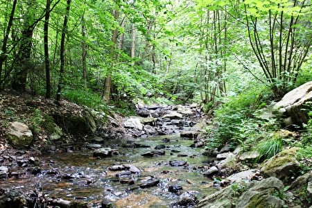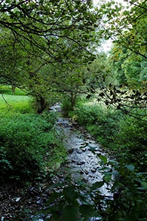 Urselbach nördlich von Oberursel. Der rund 16 km lange Bach entspringt in der Nähe der Hohemark, dem "Tor zum Taunus", und mündet im Norden Frankfurts in die Nidda. Er verläuft parallel zu den Wanderwegen in Richtung Großer Feldberg.