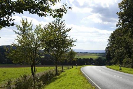 Hochtaunusstraße, Streckenverlauf bei Steinfischbach. 55 Kilometer Kurven und Kultur - das ist die Hochtaunusstraße. Die Ferienstraße gehört mit ihrem abwechslungsreichen Verlauf und einer Vielzahl von Natur- und Kulturdenkmälern zu den reizvollsten ihrer Art.