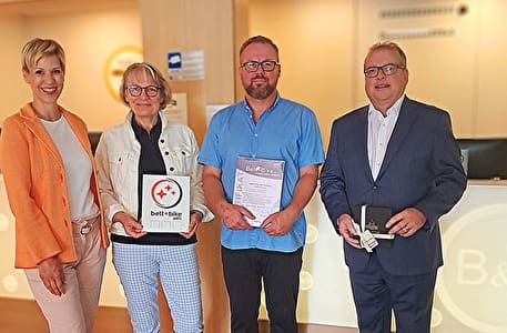 Taunus. Das B&B Hotel in Bad Homburg v. d. Höhe wurde mit dem „Bett+Bike“-Zertifikat ausgezeichnet. Das Hotel ist aktuell das einzige Haus der Stadt mit diesem Zertifikat, was das Engagement der Geschäftsführung für Radfahrende und deren besondere Bedürfnisse unterstreicht. Die offizielle Urkundenübergabe fand am 19. August 2024 in Bad Homburg statt. Vor Ort gratulierten Gastgeber Andreas Schmücker Daniela Krebs, Geschäftsführerin des Taunus Touristik Service, Kurdirektor Holger Reuter (Kur- und Kongreß-GmbH Bad Homburg) sowie Beate Heiting, Regionalmanagerin des Allgemeinen Deutschen Fahrrad-Clubs (ADFC) Hessen.