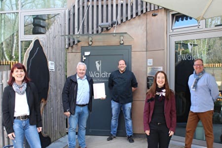 Zur Urkundenübergabe anwesend war auch Michel van Goethem, der als Repräsentant und Berater für Hessen à la carte tätig ist. Van Goethem übernimmt im Auftrag von Hessen à la carte die Durchführung der Qualitätschecks und überprüft die Mitgliedsbetriebe auf Erfüllung der Hessen à la carte Kriterien. Das Waldtraut erreichte bei der Zertifizierung zwei von drei möglichen Löwen, die das Restaurant für die kommenden drei Jahre schmücken werden.