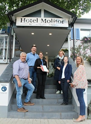 Cafè-Restaurant Molitor (Erstklassifizierung Hessen à la carte)Gutbürgerliche Hausmannskost in einem liebevoll eingerichteten Restaurant mit schöner Sonnenterrasse. Damit verwöhnt das Café-Restaurant Molitor als Familienbetrieb Gäste seit über 40 Jahren. Qualität und Geschmack der Speisen stehen dabei im Vordergrund. Die Herkunft der Zutaten aus der Region, von Fleisch und Beilagen, ist genau bekannt. Alles wird von Meisterhand ver- und bearbeitet. Auch die Kuchen und Torten werden nach den alten Rezepten der Oma gebacken. Zusätzlich bietet die Karte viele glutenfreie Gerichte, die das Restaurant auch für Gäste mit Unverträglichkeiten interessant macht. Traditionell zubereitete Saucen, hausgekelterter Äppler, selbst gebrannter Schnaps und Weine namhafter Rheingauer Winzer machen die regionale Karte komplett. Das Hotel Molitor ist als Beherbergungsbetrieb zusätzlich seit letztem Jahr mit 3 Sternen superior ausgezeichnet und konnte die Klassifizierung im Vergleich zu vorher damit leicht verbessern.