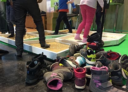 Highlight am Taunus-Stand: Der Miniatur-Barfußpfad, den man gleich ausprobieren konnte. „Wir bringen mit dem Barfußpfad die Natur in die Messehalle und die kann man dann mit unseren zertifizierten Naturpark Wanderführern bei einer unserer zahlreichen Themenwanderungen im Taunus aus einer ganz neuen Perspektive erleben“, so Uwe Hartmann vom Naturpark Taunus. Der Barfußpfad war besonders beliebt bei den vielen Schul- und Kindergartenklassen, die freitags auf die Messe strömten. Spüren, Fühlen und Erfahren lautete das Motto und sorgte für große Begeisterung bei den Kleinsten. Aber auch für die erwachsenen Besucher gab es viele Ausflugs- und Freizeittipps, wo man im Taunus Ausflüge machen kann und was es alles zu erleben gibt.