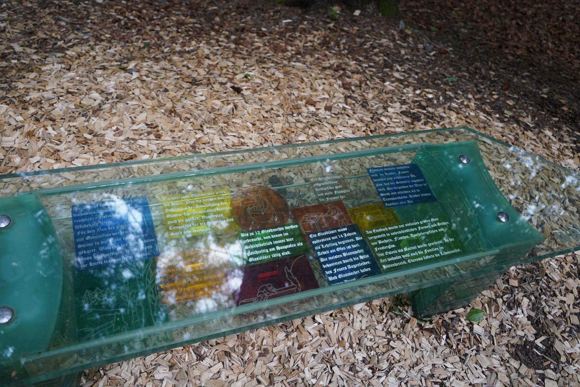 Glashütten entstand durch den Bau der namensgebenden Glashütte und dieses Erbe zeigt sich auch im weiteren Verlauf des Weges, denn der Taunus Schinderhannes Steig verläuft nun ein Stück über den WaldGLASweg. Auf diesem Abschnitt des Weges gibt es verschiedene Glasskulpturen und Infotafeln über die Glasmacherei und es ist ein Abstecher zu den gut erhaltenen Ruinen des Glasofens möglich.