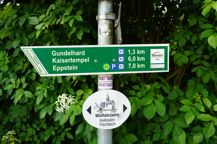 Kurz nach dem Start am Gimbacher Hof führt der Weg direkt in den Wald, ein kurzes Stück über den Waldlehrpfad Gundelhardt und vorbei an der gleichnamigen Gaststätte. Vorbei an Feldern und durch noch viel mehr Wald führte uns der meist pfadartige Steig weiter bis Eppstein.