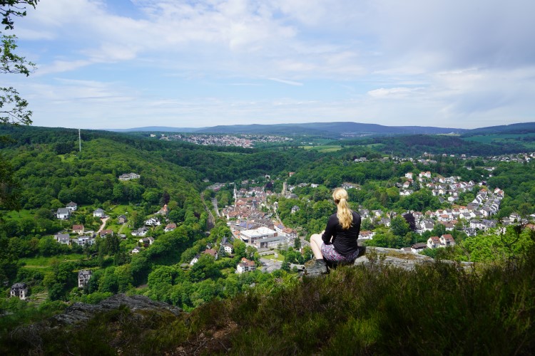 Kurz vor Eppstein unternahmen wir einen kurzen Abstecher zur Mendelssohn Gedenkstätte, von der aus man einen tollen Ausblick auf Eppstein hat und eine kleine Pause einlegen kann. Eine ähnlich tolle Aussicht bietet aber auch der Kaisertempel am Wegesrand, durch dessen Innenraum ein Aussichtspunkt erreichbar ist. Ein recht steiler Abstieg führte uns anschließend in die Burgstadt Eppstein hinein. Wahrzeichen der Stadt ist die Burg, zu der wir nur einen kurzen Abstecher machten. Aber da wir aber noch einen weiten Weg vor uns hatten, verschoben wir eine Burgbesichtigung auf den nächsten Besuch in Eppstein.