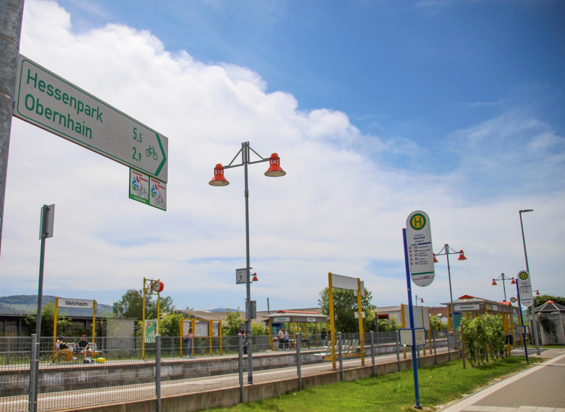 Seit dem vergangenen Herbst gibt es in Wehrheim eine durchgängig markierte Rundroute für sportliche Genussradfahrer. Ehrlicherweise kannte ich von der Tour lange Zeit nur den entsprechenden GPX-Track. Die Zeit der Theorie ist an einem sonnigen Frühsommertag jedoch glücklicherweise vorbei. Wehrheim, ich komme! Wer mit dem Rad das Apfeldorf umrunden und per ÖPNV reisen möchte, steigt am besten am Wehrheimer Bahnhof aus. Von hier kann es sofort und ohne Umwege losgehen.