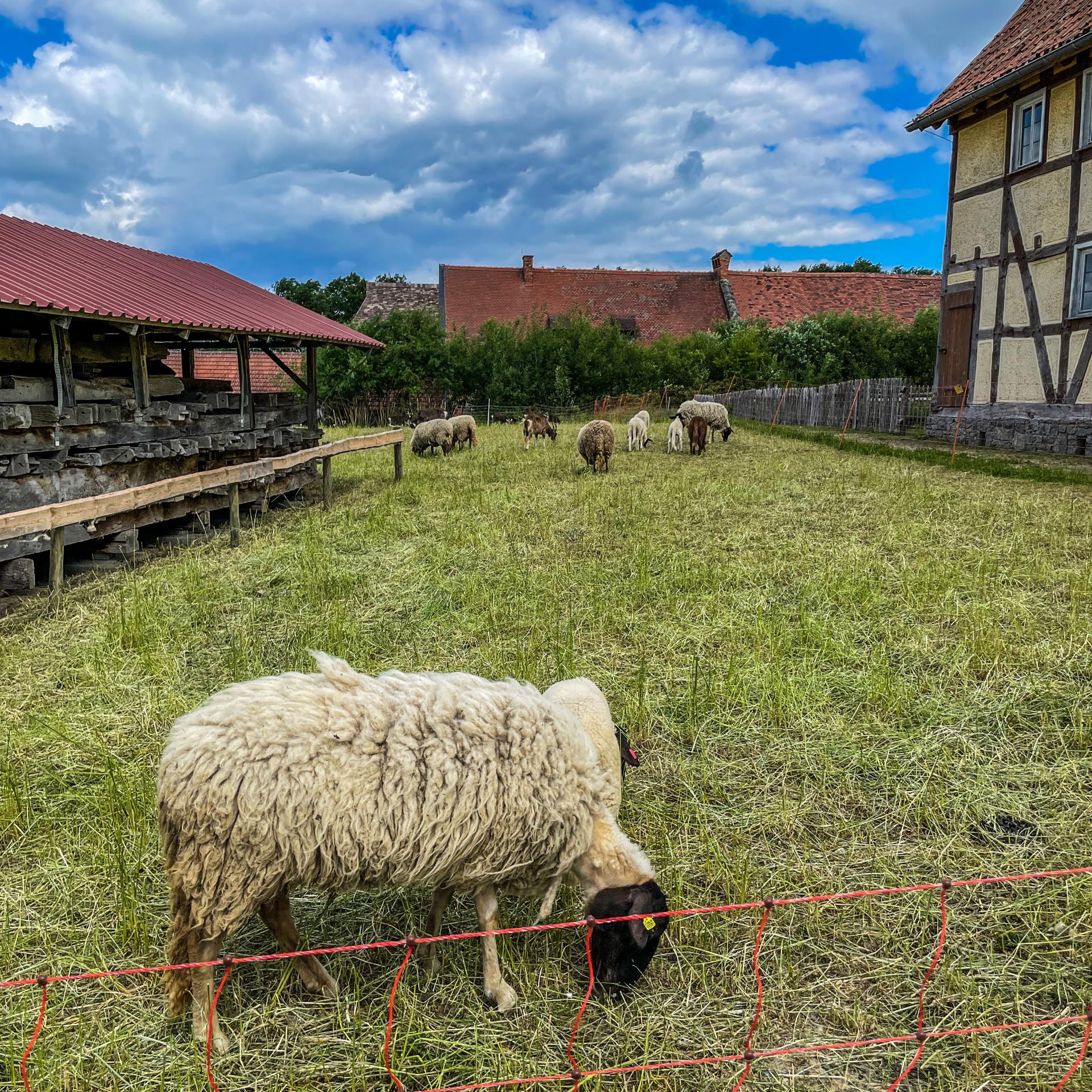 Sehr schön und wichtig fanden wir auch das Projekt Arche-Park: Im Hessenpark leben 100 Tiere, die zu den alten und gefährdeten Haustierrassen gehören. Durch die Züchtung trägt der Hessenpark dazu bei, dass die Vielfalt der alten Nutztiere aufrechterhalten bleibt. Sie werden artgerecht gehalten und lagen sichtlich zufrieden in der Sonne, als wir sie besuchten. Der Arche-Park ist übrigens über das riesige Gelände verteilt, sodass man überall auf die Tiere stoßen kann.