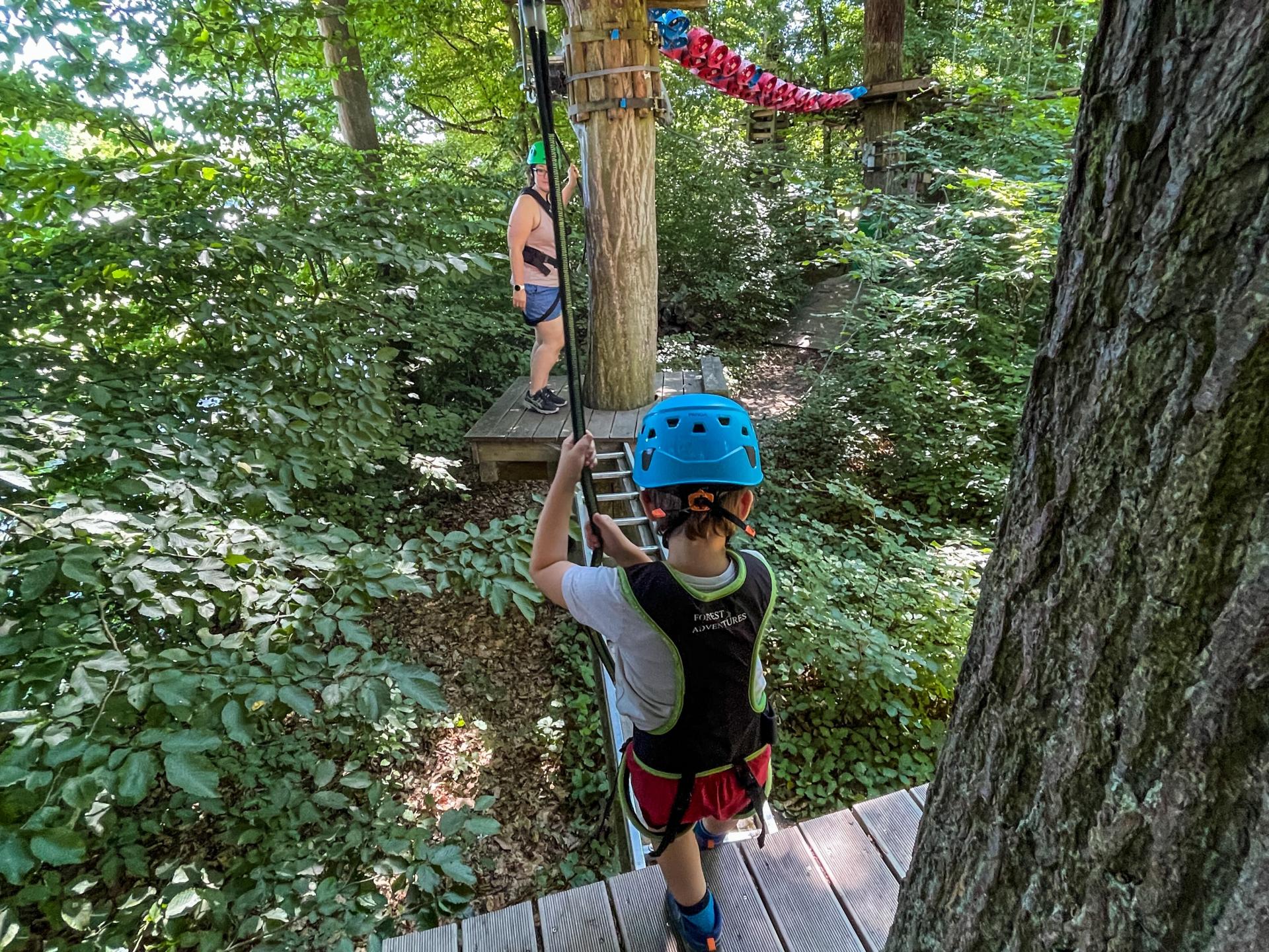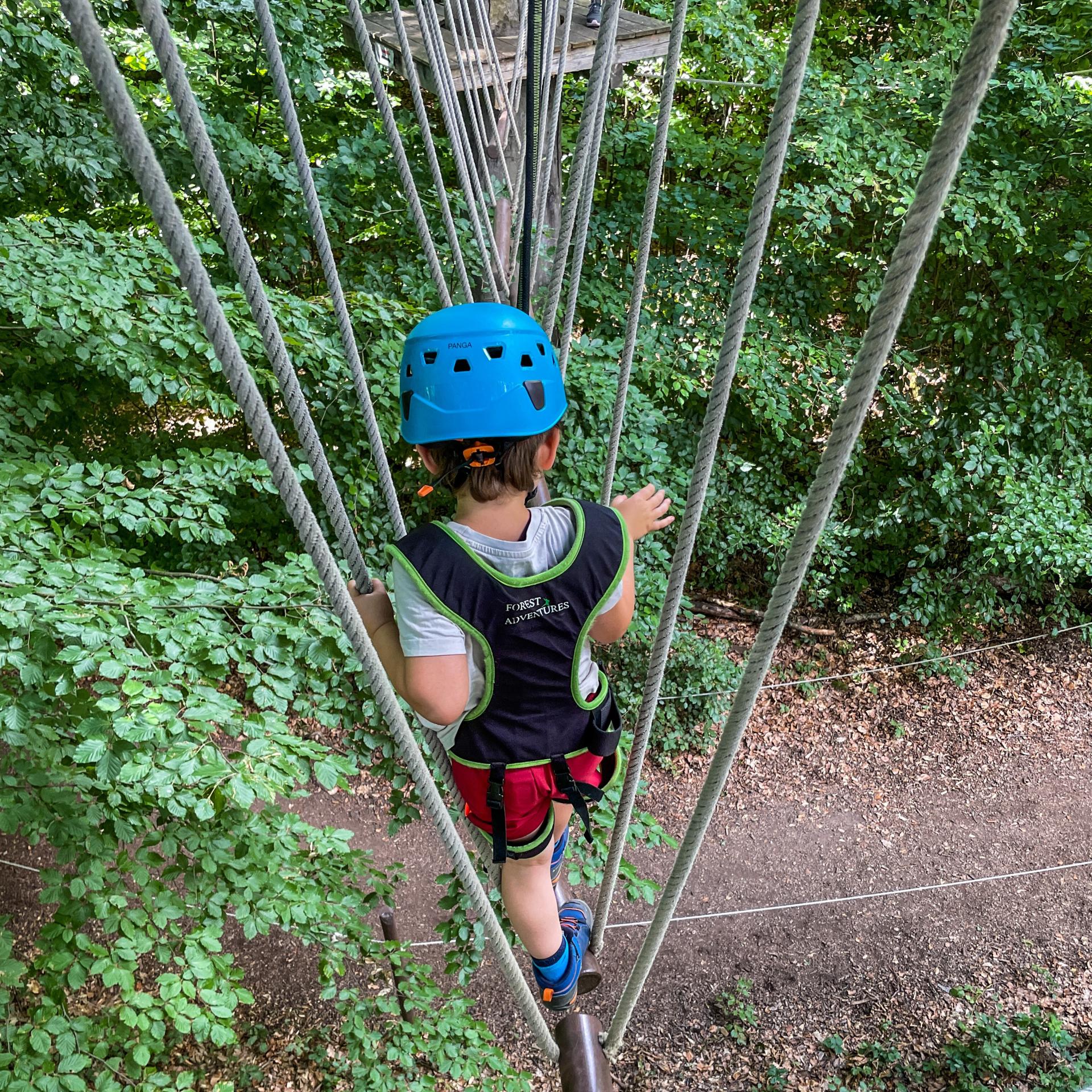 Die 12 Parcours des Kletterwalds sind in verschiedene Schwierigkeitsgrade unterteilt. Wir waren auf den Routen 1-4 Unterwegs, weil diese sich für Kinder ab 5 Jahren eignen.