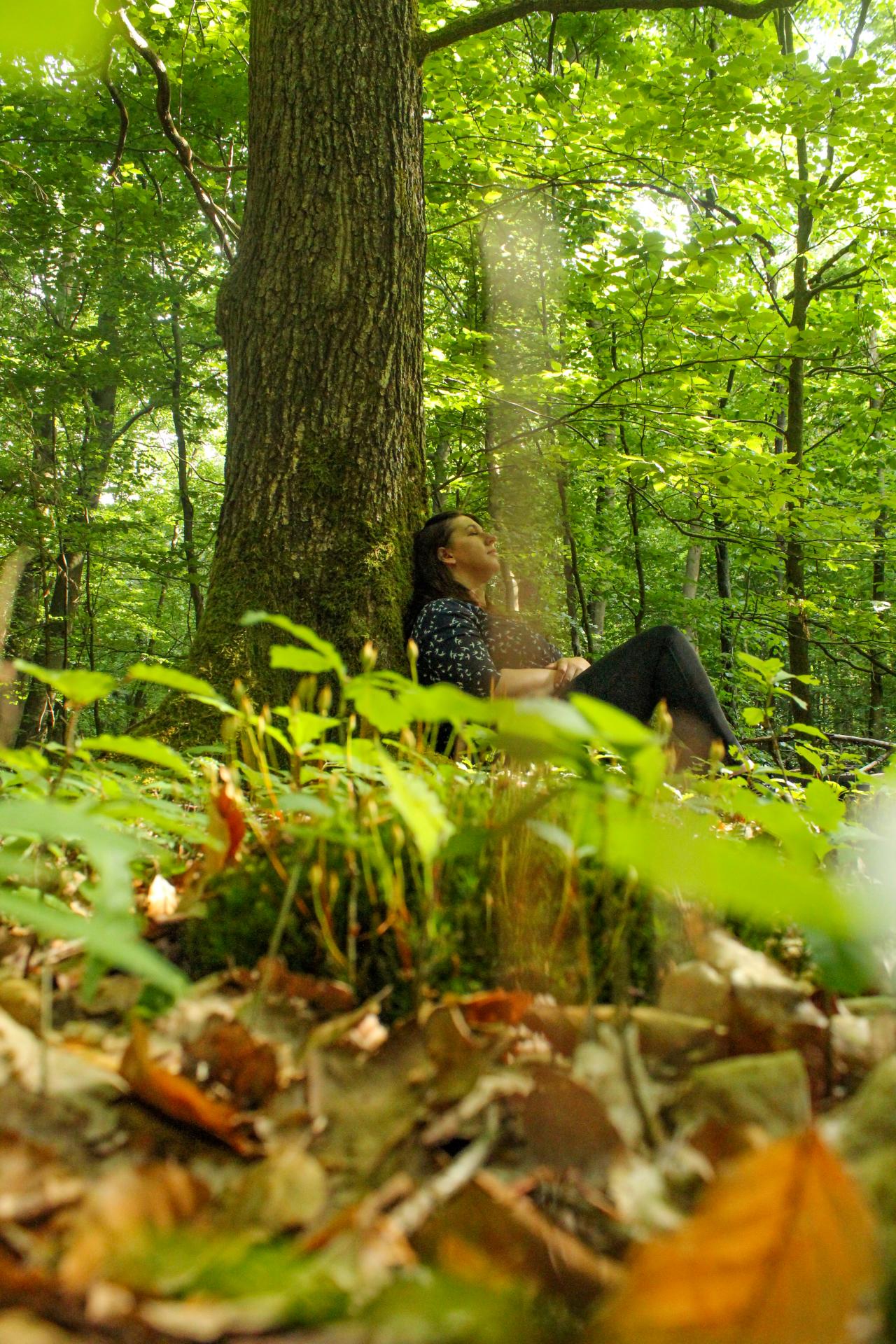 Zwischen den Blättern scheinen immer wieder Sonnenstrahlen hindurch, die Vögel komponieren eine Hintergrundmusik, die kaum schöner sein könnte. Wir stoßen tiefer in den Wald, wo die Natur uns in Form von umgestürzten Bäumen einen Sitzkreis bereitgestellt hat. Wir nehmen uns einen Moment und sprechen über die Entstehung des Waldbadens. Der Trend, der aus Japan kommt, wurde tatsächlich in 30 Jahren Forschung von einem Arzt entwickelt.